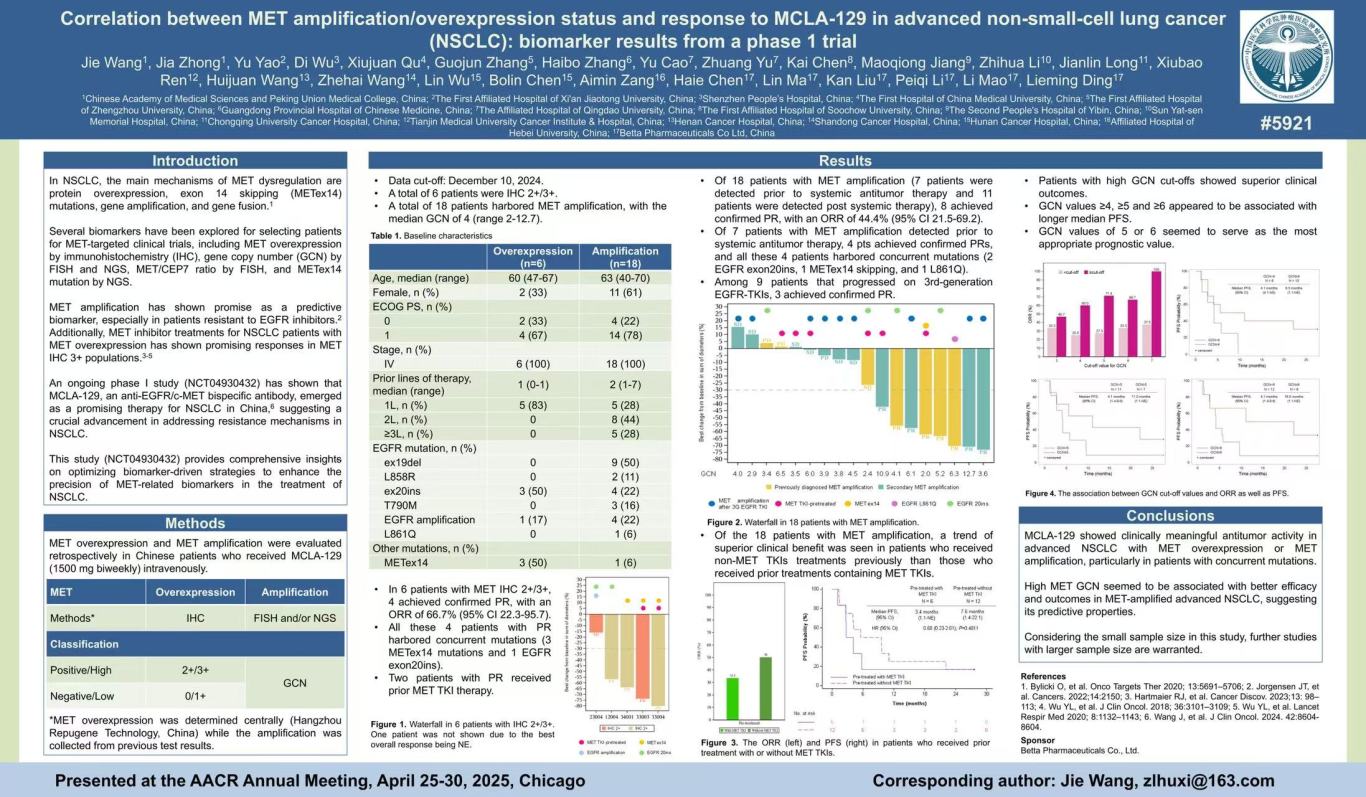 结论:MCLA-129在携带MET OE或METamp的晚期非NSCLC患者中显示出具有临床意义的抗肿瘤活性,特别是在携带共突变的患者中。高GCN似乎与METamp的晚期NSCLC患者中更好的疗效呈现相关性,表明其预后特性。