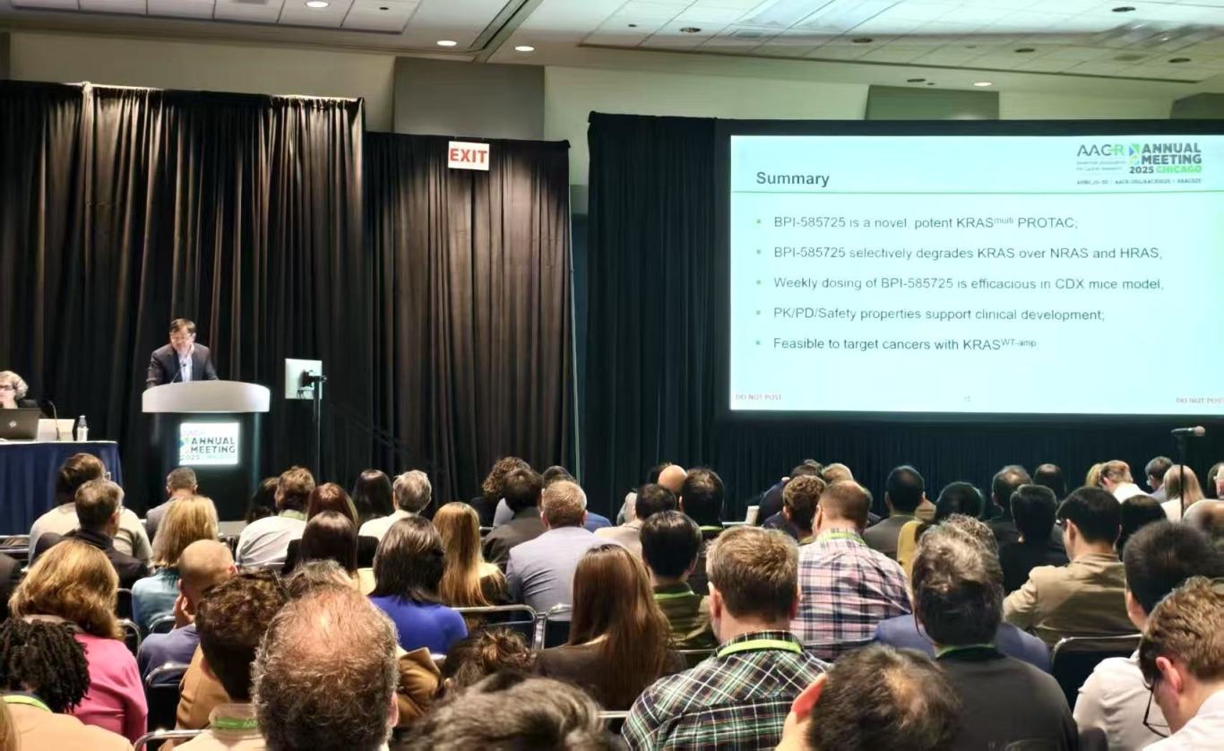 BPI-572270是一种强效泛RAS抑制剂,对携带KRAS、NRAS和HRAS不同突变的多种肿瘤细胞具有强效杀伤作用,显示出纳摩尔级IC50的细胞活性。BPI-572270在KRASG12V和KRASG12D的人胰腺癌异种移植小鼠模型中,低剂量每天口服给药一次可实现肿瘤消退。BPI-572270在小鼠、大鼠和比格犬中具有出色的药代动力学特性和良好的口服生物利用度。大鼠和比格犬进行的重复给药安全性评估数据初步显示BPI-572270安全性良好,进一步增强其在临床开发潜力。BPI-572270有望为携带不同RAS突变的广大实体瘤患者提供新的治疗方案。