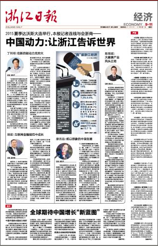 趁这次参加达沃斯论坛的机会,丁列明在各个会场辗转。他告诉记者,这次论坛很多活动都涉及大健康产业,比如智能医疗、诊断和生物医药的比重很高,这说明这些领域市场潜力大,而且发展也相当快。“健康产业现在是浙江提出的要大力发展的七大万亿产业之一,值得关注!”