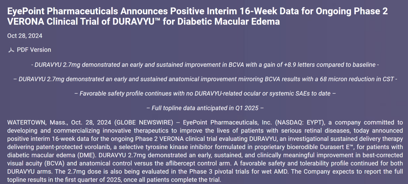 ①https://investors.eyepointpharma.com/news-releases/news-release-details/eyepoint-pharmaceuticals-announces-positive-interim-16-week-data